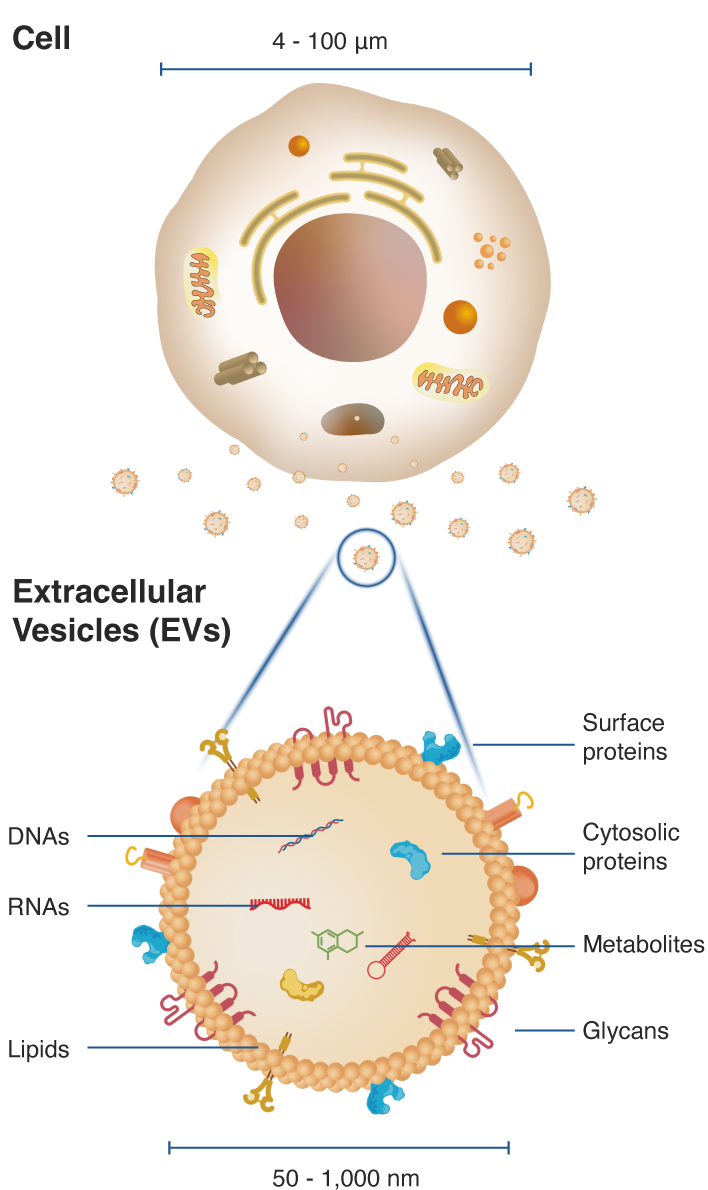 All living cells release extracellular vesicles (EVs): small, membrane-bound particles that transport molecular cargo from inside the cell into the bloodstream. Unlike many circulating markers that reflect cell damage or systemic background, EVs are actively secreted by viable cells and carry intact proteins, RNAs, lipids, and metabolites that capture ongoing cellular functions such as metabolism, stress adaptation, and intercellular signaling.